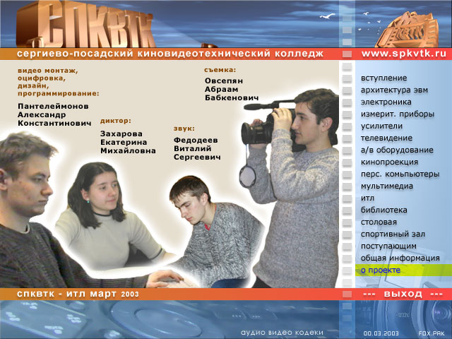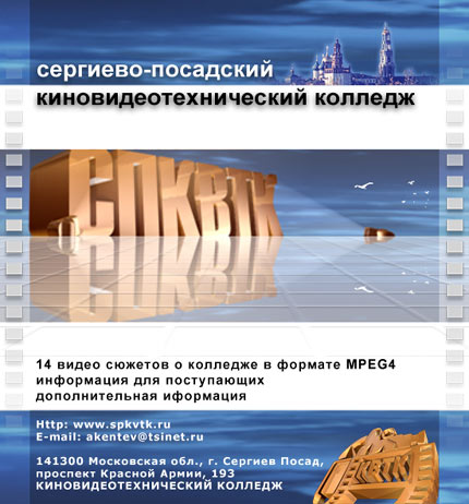 Thesis project for Cinemavideotecnical College. Includes a number of presentation videos, for storage on specialized CD of 50 megabytes of business card format.