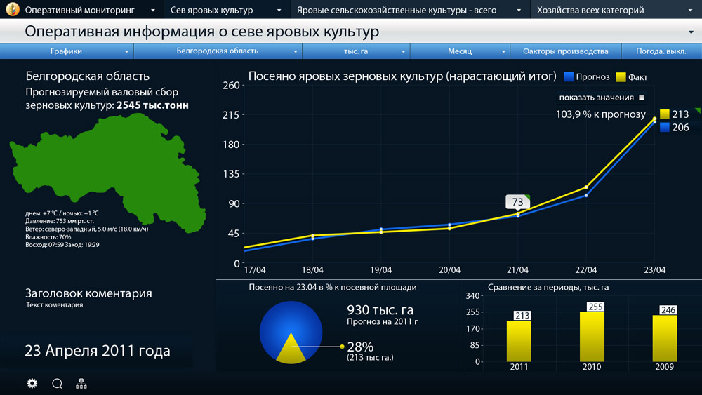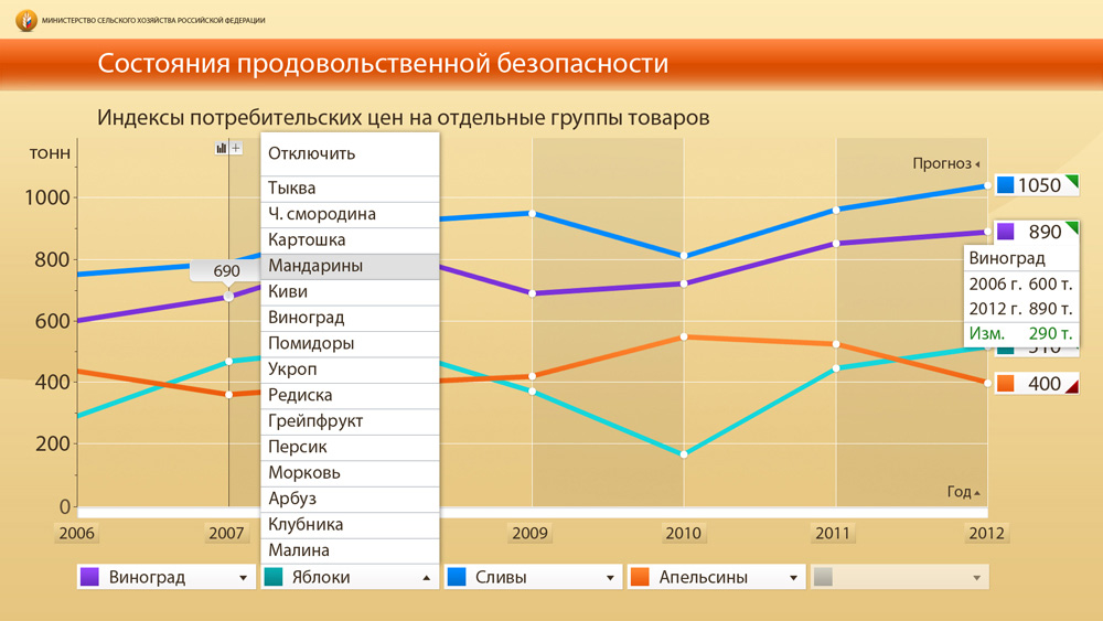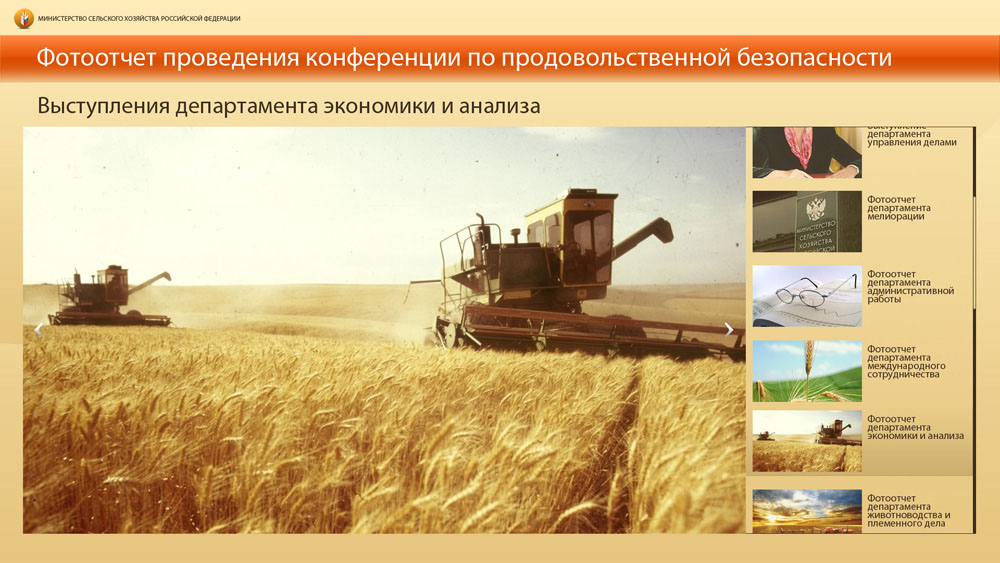 Interactive infographic project of the Ministry of agriculture, consisting of the presentation and program of the situation center for monitoring and forecasting conditions.