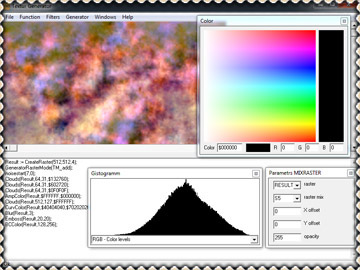 Graphical interface for the texture and 2D image generation software module. One of the multimedia data modeling tools.